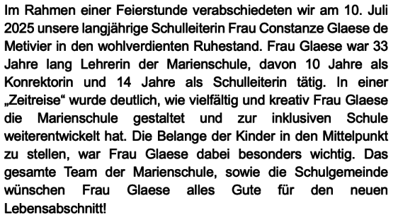 Seit dem 01.08.2025 gelten an der Marienschule verbindliche Regeln zur Nutzung privater digitaler Endgeräte (Smartwatch, Handy). Weitere Informationen finden Sie unter folgendem Download: