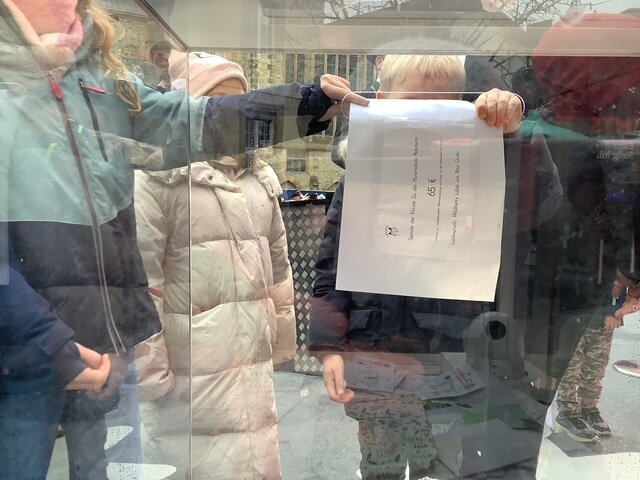 Die stolze Summe von 800 Euro wurde am 16.12.2024 von den Kindern der Tipptop-AG am Glashaus übergeben.