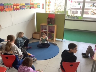 Am Dienstag nahmen unsere Lehrkräfte die Rolle der Erzählerinnen und Erzähler ein und lasen den Kindern aus einem spannenden Kinderbuch vor. Doch nicht nur das, ein weiteres Highlight war das Vorlesen von Schülerinnen und Schülern für ihre Mitschülerinnen und Mitschüler. Besonders beeindruckend war es, wie die älteren Kinder die Jüngeren mit ihren Erzählungen fesselten. Die Kinder genossen die Geschichten und hörten gespannt zu.