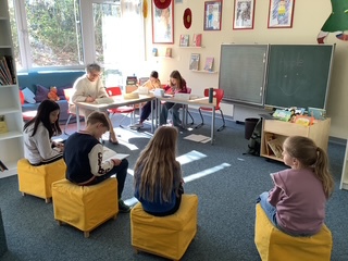 Ein besonderer Moment war die Autorenlesung der bekannten Kinderbuchautorin Stefanie Taschinski. Sie las den Drittklässlern aus ihrem Buch „Der geniale Herr Kreideweiß“ vor und beantwortete geduldig die Fragen der Kinder. Die Kinder waren begeistert und erlebten hautnah, wie ein Buch entsteht.