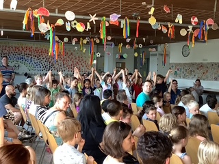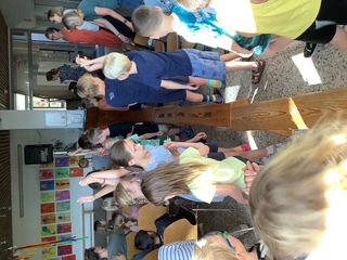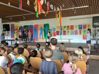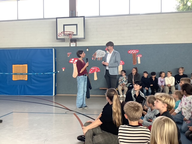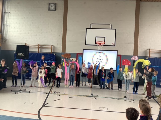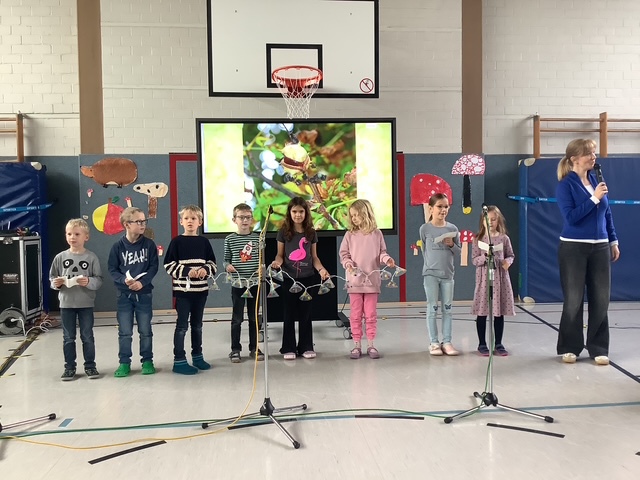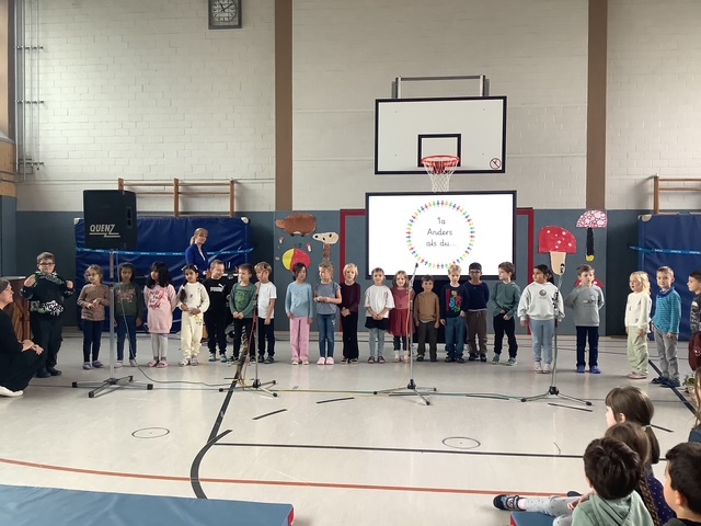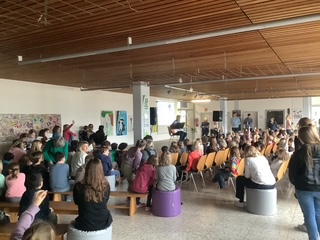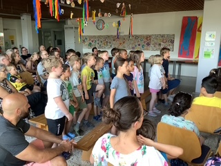 Zu Beginn der Woche stimmten wir uns mit einem gemeinsamen Morgensingen auf die Kinderbuchwoche ein. Alle Klassen versammelten sich in der Aula, um zusammen Lieder zu singen und die Woche zu eröffnen.