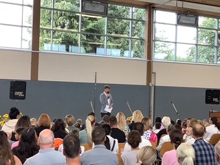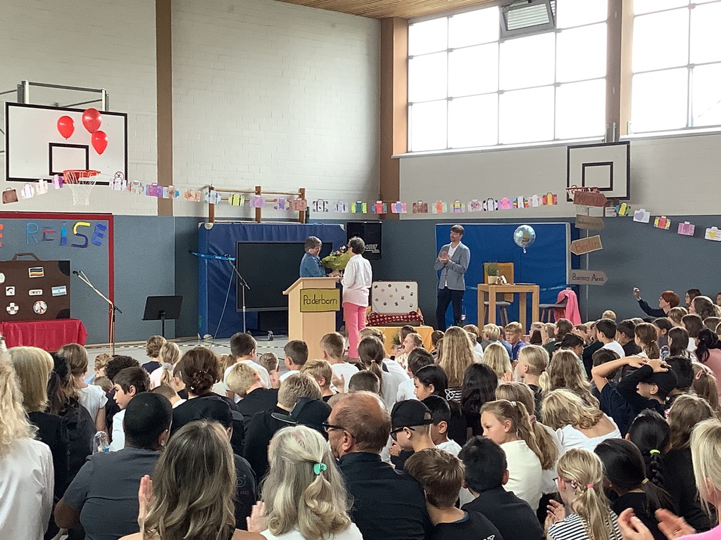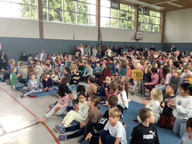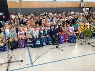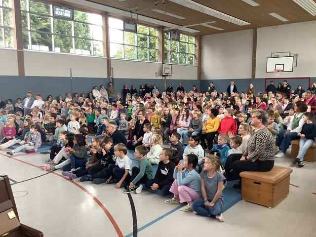 Am letzten Schultag vor den Herbstferien versammelte sich die gesamte Schulgemeinschaft zu einem besonderen Anlass in der Turnhalle: dem traditionellen gemeinsamen Morgensingen und der Amtseinführung unseres neuen Schulleiters.