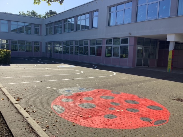 Seit dem Wochenende erstrahlt unser Schulhof in ganz neuen Farben. Dank der Initiative des Fördervereins der Marienschule konnten Hüpfkästchen und kreative Motive auf den Boden gemalt werden, die unseren Pausenhof nun wieder lebendiger und fröhlicher machen.