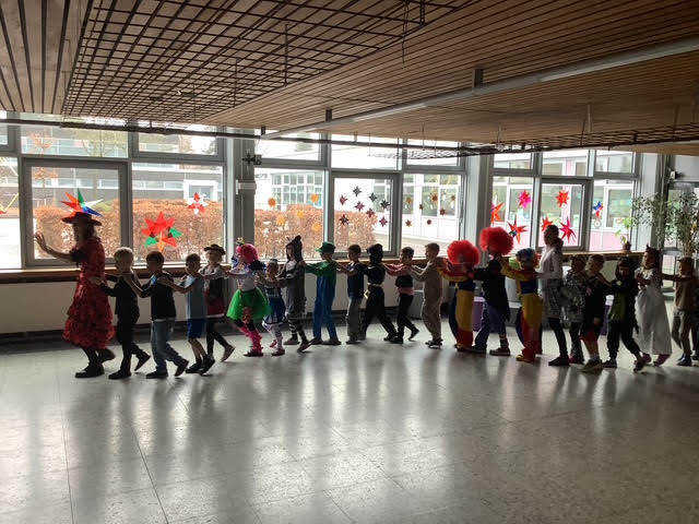 Den Höhepunkt des Tages bildete eine große Polonäse mit allen Kindern in der Turnhalle. Gemeinsam zogen die Klassen durch das Schulgebäude, bis sich schließlich alle in der Halle trafen. Dort wurde noch einmal zusammen getanzt, gelacht und gefeiert.
