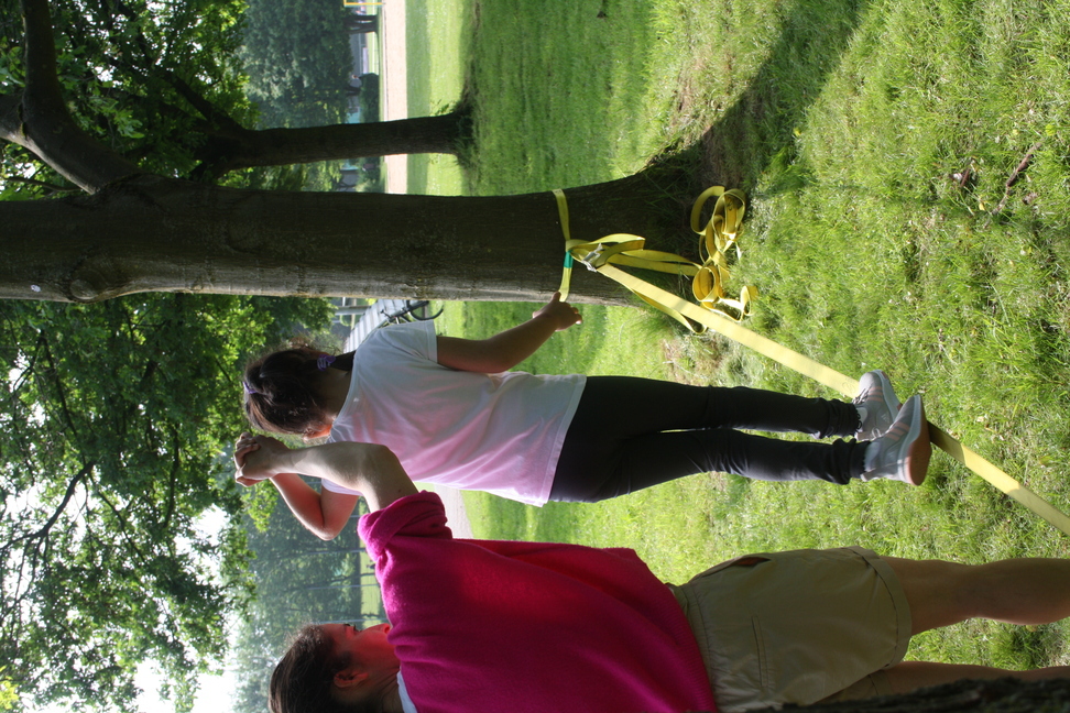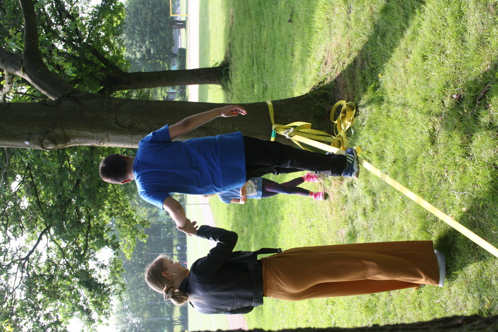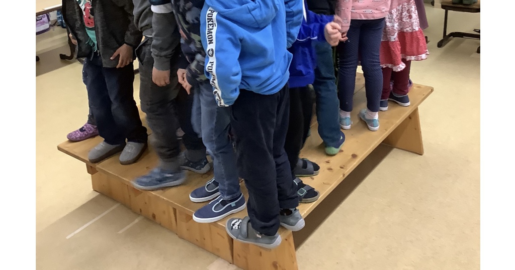 Über eine schmale "Brücke" müssen alle Kinder sicher