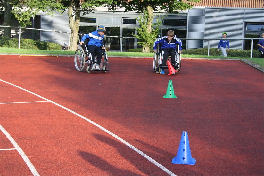 Bei dem Sportfest, das in der Regel im Frühsommer stattfindet, werden integrative Gruppen gebildet. Die Mannschaften werden jahrgangsübergreifend zusammengestellt und es machen Regelschüler/innen zusammen mit Schülern/innen mit sonderpädagogischem Förderbedarf gemeinsam Sport. Basis des Sportfestes ist ein leichtathletischer Mannschaftsvierkampf.