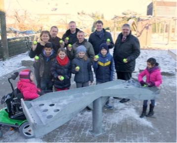 Das lange Warten hat nun ein Ende - die Kinder der Marienschule konnten am Montag, den 19. Januar 2016 das während einer Projektwoche entwickelte neue Spielgerät einweihen. Nun wurde eine wetterfeste Kugelbahn aus Metall auf ihrem Schulhof installiert, an der auch Rollstuhlfahrer spielen können, da der Tisch unterfahrbar ist. Die ersten Tage haben schon gezeigt, dass das Spielgerät sehr gut bei den Kindern ankommt und weiter spannende Wettkämpfe zu erwarten sind.