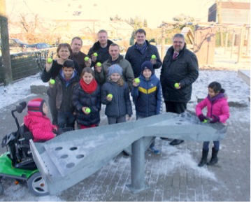 Das lange Warten hat nun ein Ende - die Kinder der Marienschule konnten am Montag, den 19. Januar 2016 das während einer Projektwoche entwickelte neue Spielgerät einweihen. Nun wurde eine wetterfeste Kugelbahn aus Metall auf ihrem Schulhof installiert, an der auch Rollstuhlfahrer spielen können, da der Tisch unterfahrbar ist. Die ersten Tage haben schon gezeigt, dass das Spielgerät sehr gut bei den Kindern ankommt und weiter spannende Wettkämpfe zu erwarten sind.