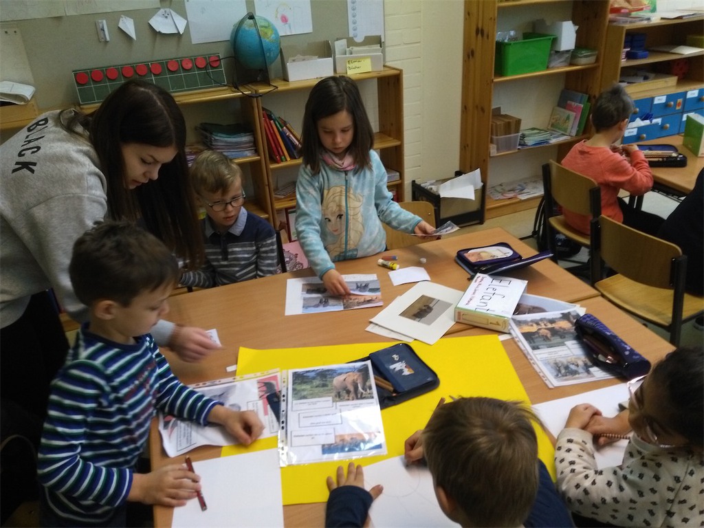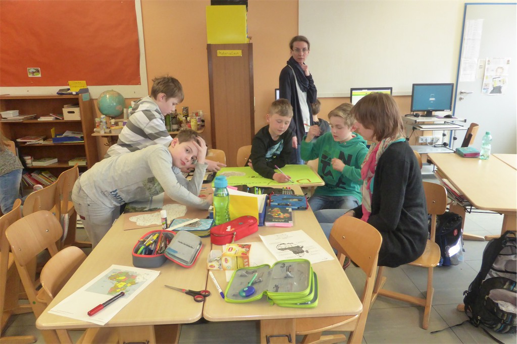 Zum Thema „Globales Lernen“ arbeitete eine weitere Gruppe mit Kindern der Jahrgänge 3 und 4, die von der externen Referentin, Frau Pilzecker, betreut wurde. Der inhaltliche Schwerpunkt lag hier auf den Themen „Schulalltag in anderen Ländern“, „Kinderrechte“, sowie „Kinderarbeit“.