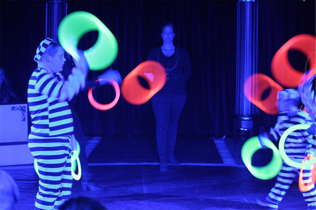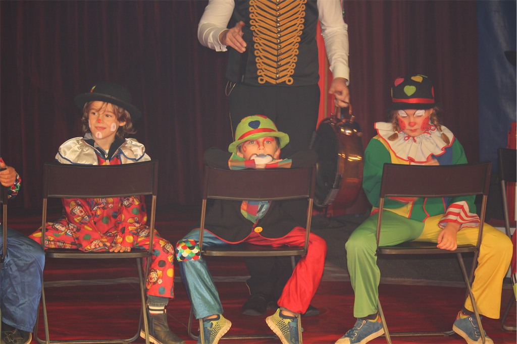 Direkt nach der Vorstellung begann dann schon das konzentrierte Training der einzelnen Gruppen der Clowns, Akrobaten, Zauberer, Fakire und der diversen Performance-Künstler. Viel Zeit blieb nicht, war doch für die erste der zwei Zirkusgruppen bereits für Mittwochabend eine Vorstellung geplant. Aber die Kinder trainierten hart, jeder wurde in seinen Fähigkeiten wahrgenommen und durfte teamorientiert sein Können zeigen. Und so konnten die kleinen Stars bereits in ihrer ersten Vorstellung unter dem tosenden Beifall ihrer Eltern, Verwandten und Mitschülern den wohlverdienten Ruhm ernten. Die darauffolgenden Vorstellungen am Freitag und Samstag waren ebenfalls gut besucht und nicht minder erfolgreich. So manche Eltern dürften über die Leistung ihrer Sprößlinge nach so kurzer Übungsphase bass erstaunt gewesen sein!