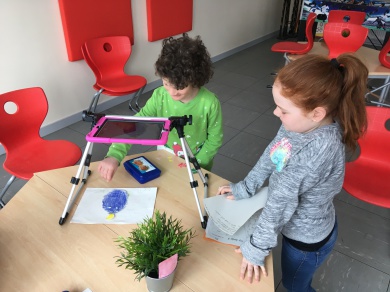 Im Englischunterricht der 3b haben wir die neuen Möglichkeiten der iPads u.a. dazu genutzt, erste Erklärvideos mit Hilfe der Legetechnik zu drehen. Die Kinder bastelten dazu zunächst in Partnerarbeit ein Monster mit verschiedenen Körperteilen, schrieben ein kurzes Drehbuch auf Englisch und verfilmten dies dann. Ein Kind benannte die Körperteile in englischer Sprache, das andere Kind legte und ergänzte das Monsterbild nach und nach.
